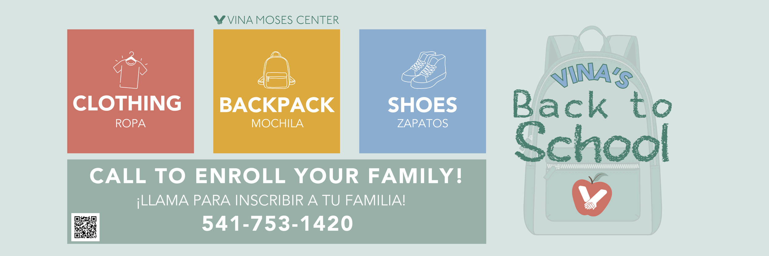 Call 541-753-1420 during business hours to enroll your Pre-K - 12th grade student(s) - enrollment is required. Each year, Vina Moses Center helps Benton County students prepare to start the school year with confidence. Learn how you can help support this program here!